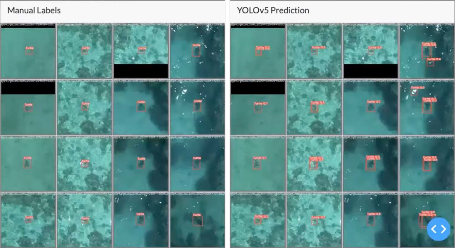 FIGURE B1-2. A screenshot from the video of the turtle detection project presentation identifies turtles detected in the drone imagery. Go to the flipbook version of this article to view the full video. > High res figure