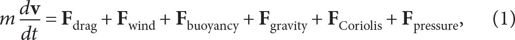 Specifically, the motion of a surface drifter subject to oceanic and atmospheric forcing can be described by Newton’s second law: