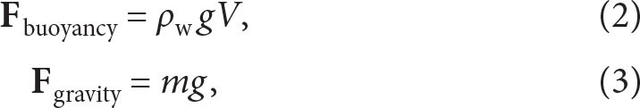 where ρw is the density of seawater, V is the displaced volume, and g is gravitational acceleration.