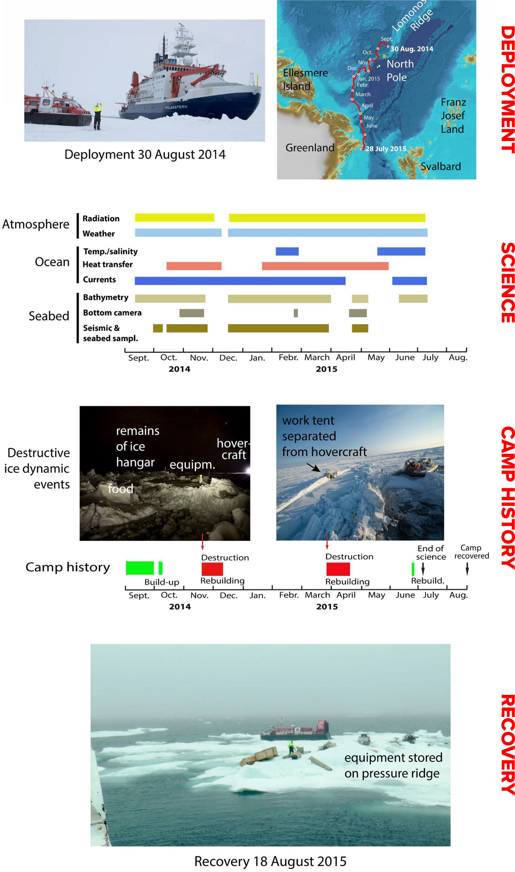 FIGURE 4. Summary of events and scientific activities during the Fram-2014/15 ice drift. From Kristoffersen et al. (2016)