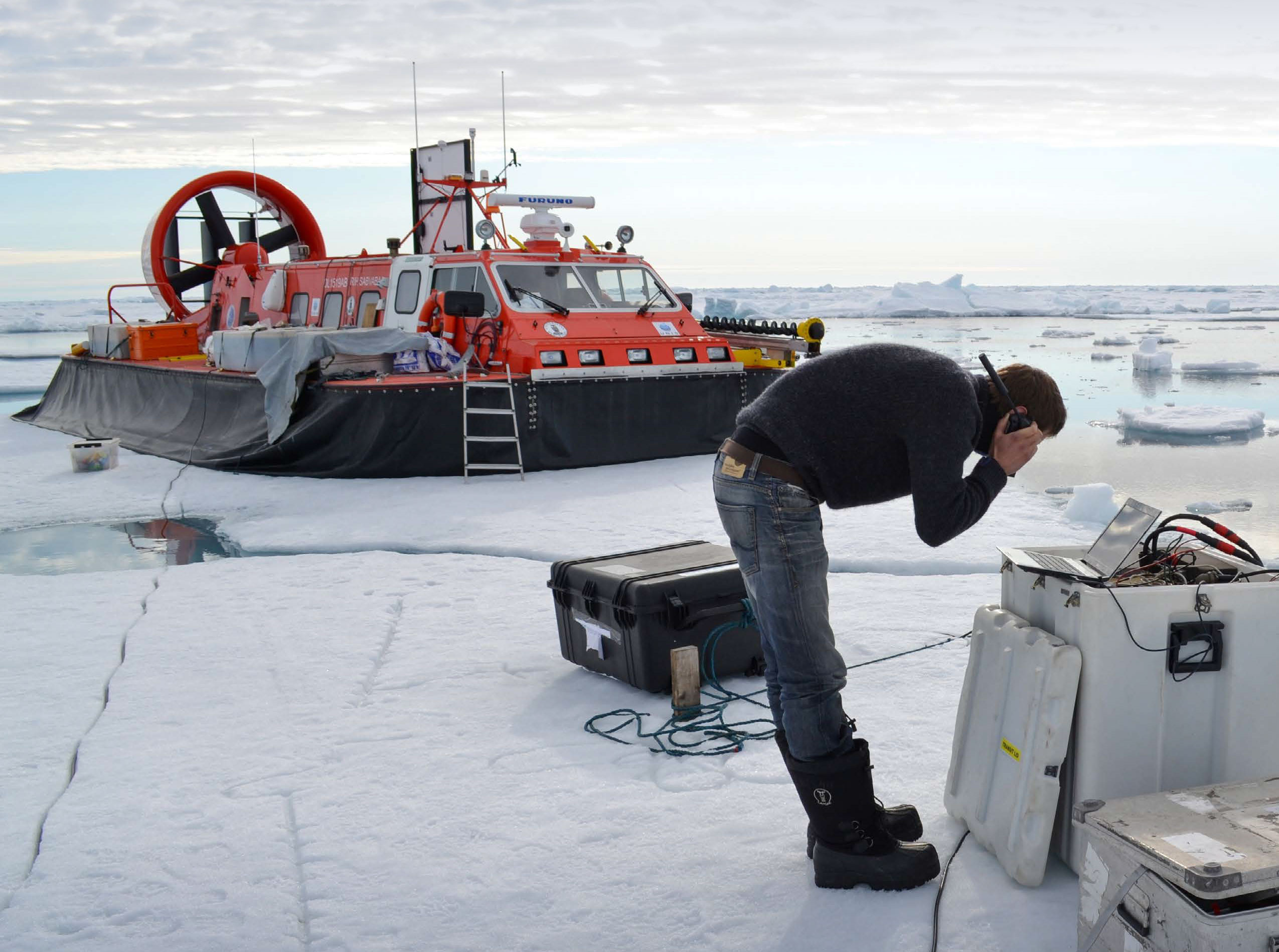 The hovercraft Sabvabaa was acquired by Blodgett-Hall Polar Presence LLC. Operations in the Arctic Ocean have been funded by the Norwegian Research Council during the Polar Year and later by the Norwegian Petroleum Directorate; Lundin Energy, Norway; and Axxis Geosolutions, USA. Logistics support for Antarctic operations was provided by White Desert Antarctica and the Indian Antarctic Programme, National Centre for Polar and Ocean Research. We gratefully acknowledge Arctic ice drift deployment support from the Alfred Wegener Institute for Marine and Polar Research, Bremerhaven; air support by the Norwegian Coast Guard and the Danish Arctic Command; logistics support from University Studies in Svalbard (UNIS) and Griffon Hoverwork Ltd., Southampton; and the unselfish effort of crew member Audun Tholfsen, to achieve maximum scientific output during the Fram-2014/14 ice drift. It would not have been possible to promote the hovercraft concept without the enthusiasm of Ola M. Johannessen, Andreas Heiberg, Gunnar Sand, Jørn Thiede, Harald Brekke, Geir Birger Larsen, Halvor Jahre, Patrick Woodhead, Vikram Goel, and Jan Erik Lie. Crucial electronic and mechanical support was provided by Ole Meyer, Gaute Hope, Hans Berge, Jostein Berge, and Russ Bagley. We thank John Gifford and Adrian Went of Griffon Hoverwork Ltd., Southampton, for prompt responses to our various needs over the years.